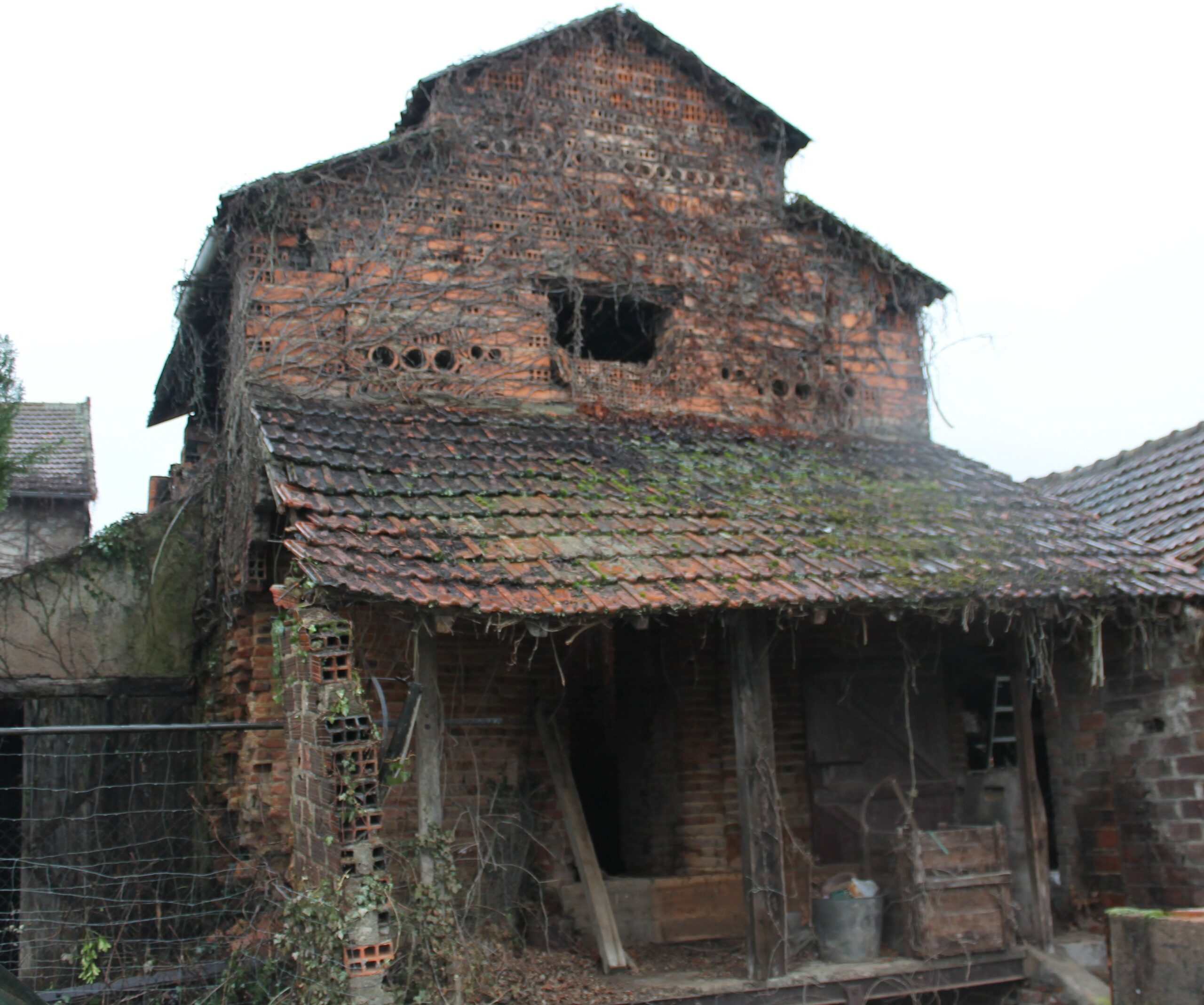 • La mise hors d’eau du séchoir dont la charpente et la couverture ont été envahies, au fil du temps, par la végétation.