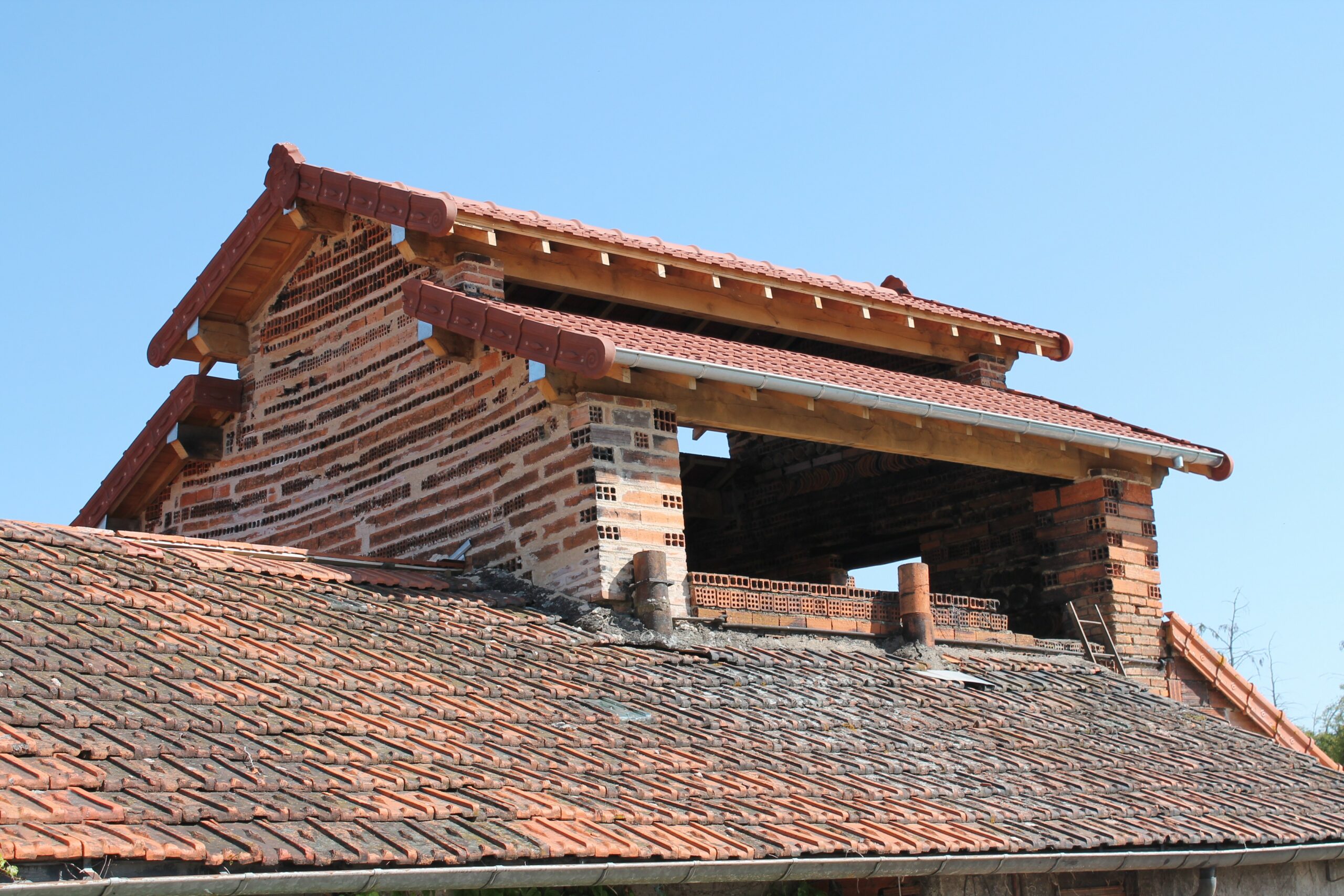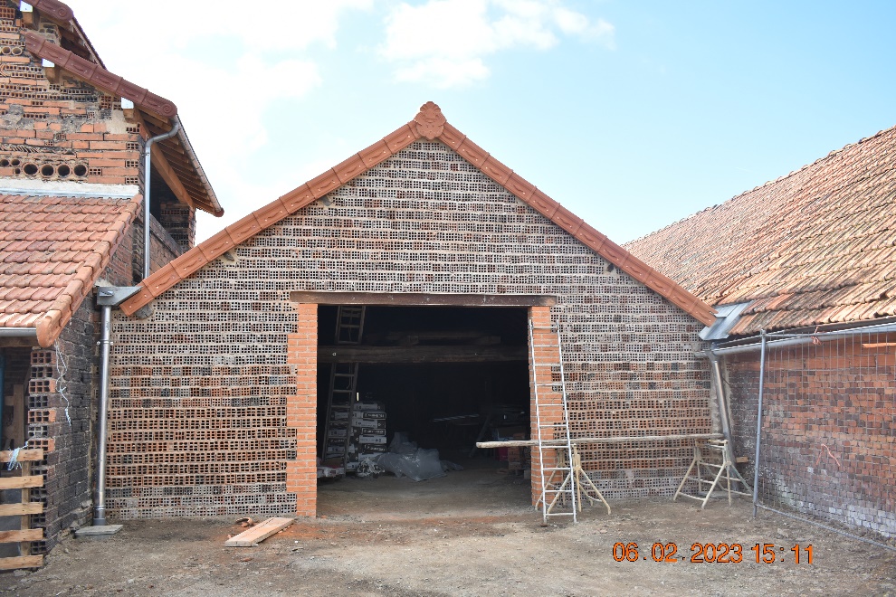 • Réfection du pignon est avec des briques à trous récupérées à Lucenay-les-Aix