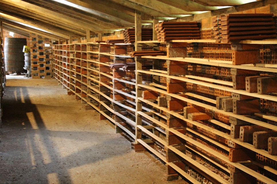 La tuilerie prend forme, avec la construction d’un bâtiment en bois. Dès lors, les briques y sont fabriquées et cuites dans un petit four à bois.
